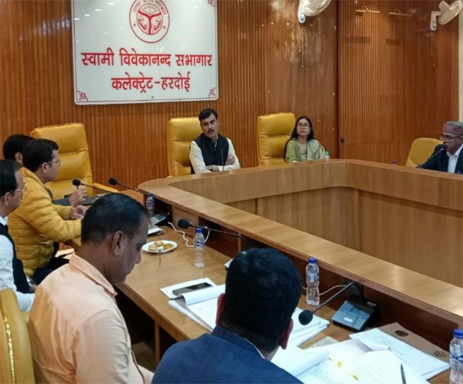 सर्किल रेट पर आईं आपत्तियों को अधिकारियों के साथ निस्तारित करते डीएम एमपी सिंह। फोटो सूचना विभाग