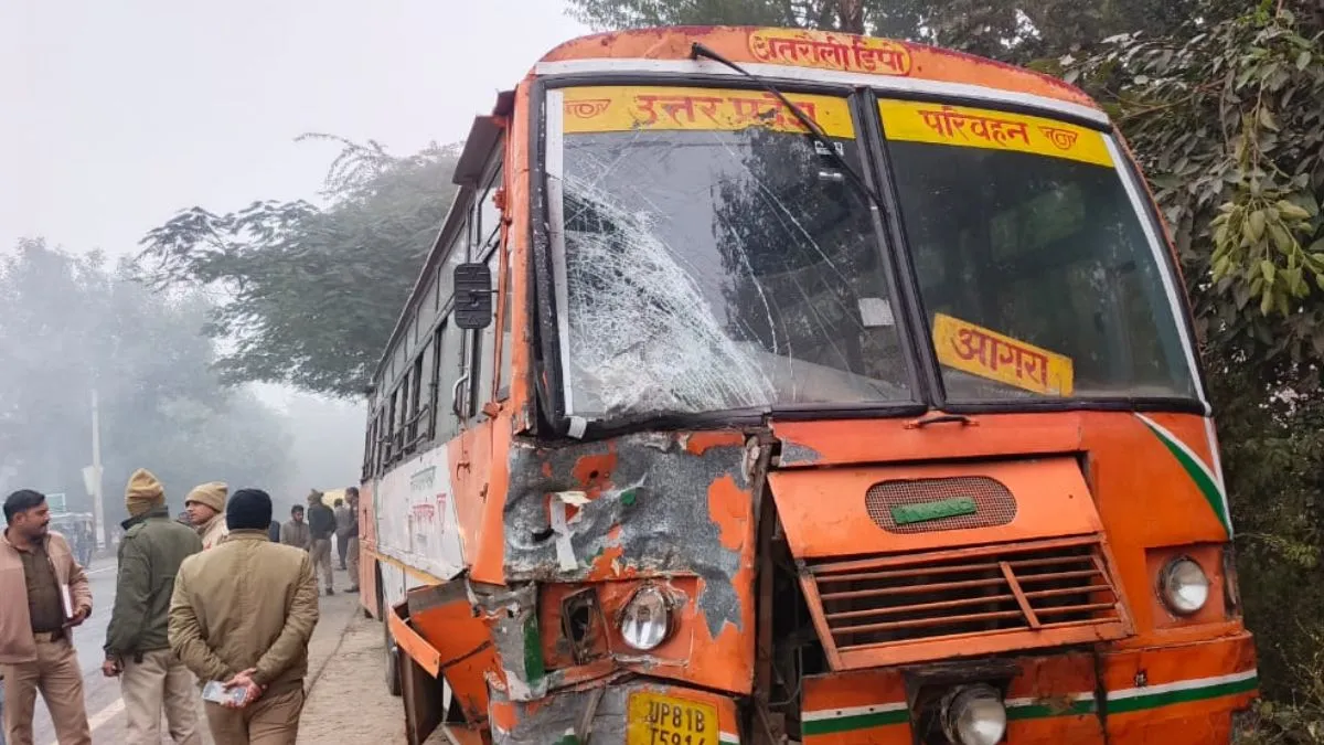 कोहरे में रोडवेज और स्कूल बस की भीषण भिंड़त, आगरा-अलीगढ़ हाईवे पर हादसा; तीन लोग घायल
