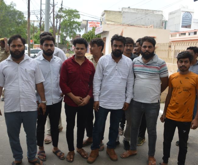 हाथरस के पीडब्ल्यूडी गेस्ट हाउस में रविवार को न्यायिक जांच आयोग के समक्ष बयान दर्ज कराने पहुंचे चश्मदीद और घटना से जुड़े लोग। जागरण