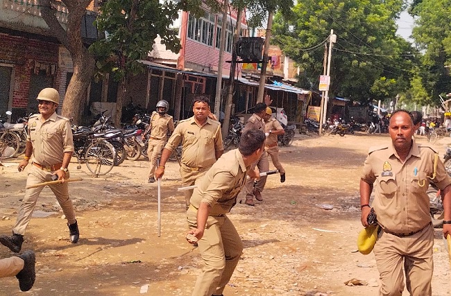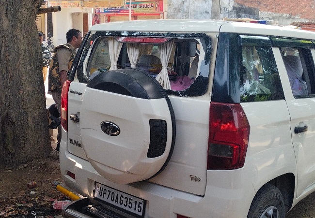 बाजार में दोनों तरह से जब उपद्रवियों ने पुलिस पर पथराव शुरू किया तो बचते हुए एएसपी ग्रामीण शैलेंद्र सिंह अपनी गाड़ी से गिर गए। सीओ मड़ियाहूं विवेक सिंह ने एक कमरे में जाकर जान बचाई।