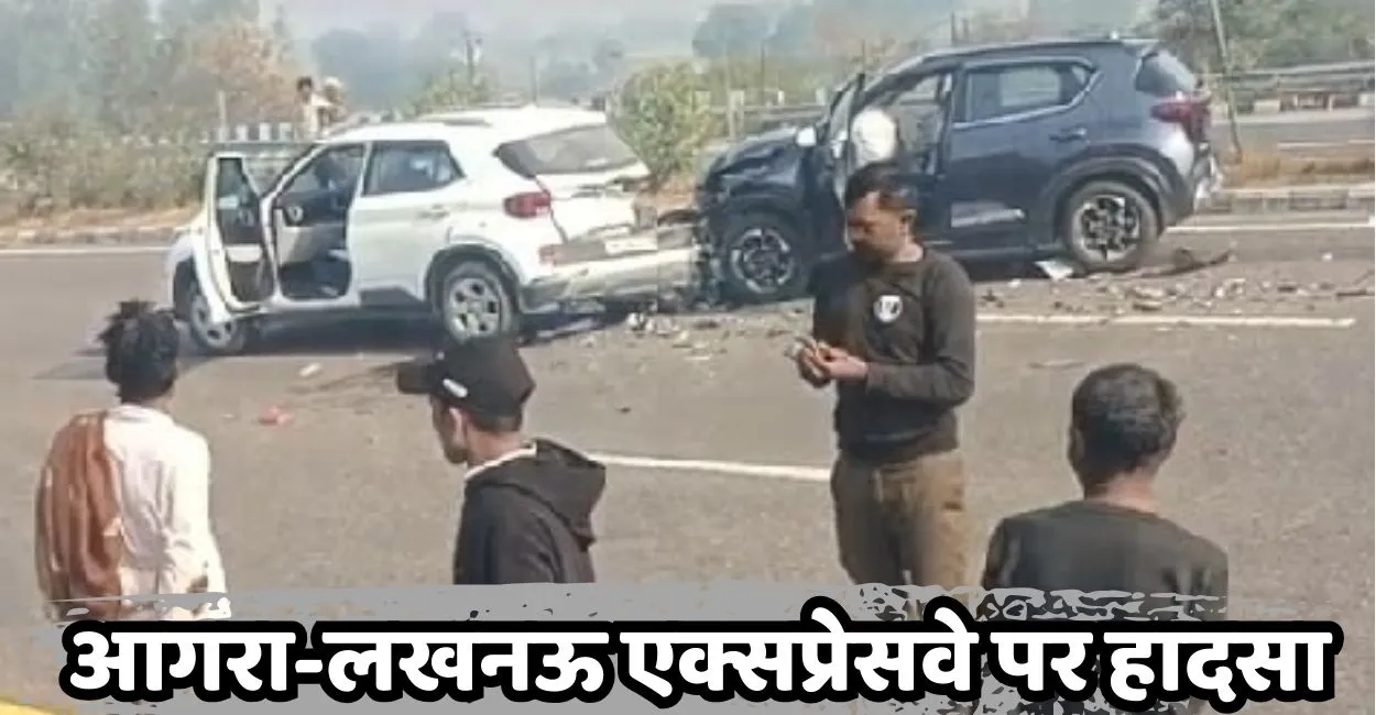 आगरा-लखनऊ एक्सप्रेसवे पर एक्सप्रेसवे पर हादसा, कंटेनर की टक्कर से पलटी कार, देखने में दो कारें भी आपस में टकराईं