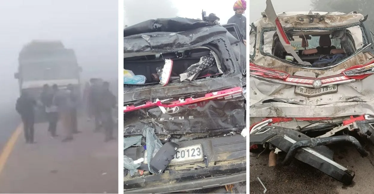 Agra Lucknow Expressway पर घने कोहरे में हादसा, पलटी पिकअप से टकराईं छह कार और एक स्लीपर बस, 7 जख्मी