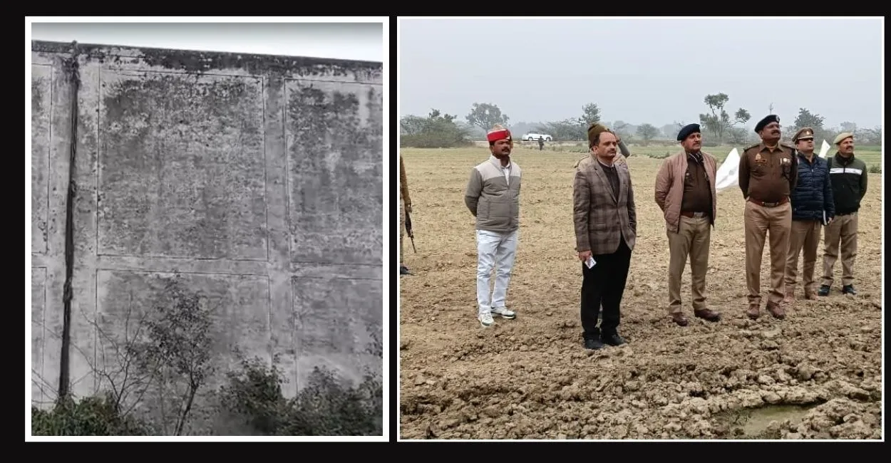 इसी दीवार को फांदकर भागे कैदी, जेल के बाहर बंदी भागने वाले स्थान को देखते डीएम और एसपी। जागरण