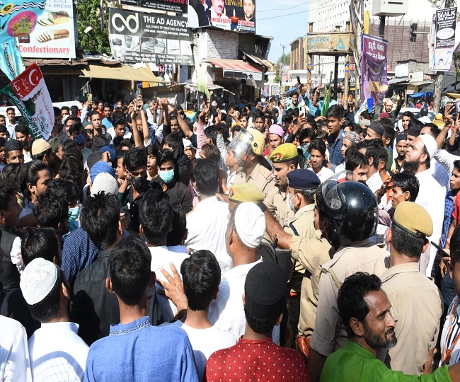 इसके बाद जुलूस मूलगंज से फूलबाग की ओर बढ़ गया। जहां से भीड़ शिवाला की ओर मुड़ गई। हालांकि इन सबके बीच पुलिस विरोध करते नहीं दिखी। जैसे ही जुलूस फूलबाग पर पहुंचा तभी पुलिस की हलचल कुछ बढ़ते दिखी। मौके एडीसीपी आकाश कुलहरि पहुंचे जिनके नेतृत्व में पुलिस ने जुलूस को आगे बढ़ने से रोका। वहीं हजारों की भीड़ रेलबाजार की ओर बढ़ गई।