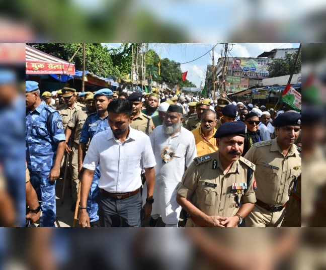 इस दौरान पुलिस आयुक्त बीपी जोगदण्ड, संयुक्त पुलिस आयुक्त आनंद प्रकाश तिवारी, डीसीपी पूर्वी रवींद्र कुमार समेत बड़ी संख्या अफसर नई सड़क पर मौजूद रहे। अधिकारी लगातार धर्म गुरुओं से संवाद करते रहे। जुलूस मार्ग पर लगातार पुलिस बल पैदल गश्त करते रहे। एहतियातन यहां पर दमकल के वाहन भी लगाए गए थे। जूलुस के दौरान कुछ पैदल चल रहे लोगों ने चंद्रेश्वर हाता लेन से होकर गुजरने का प्रयास किया तो पुलिस ने उन्हें वापस उसी लेन में भेजा।