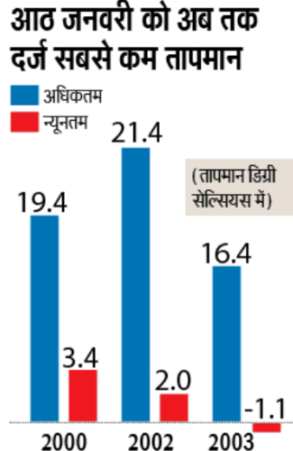 - 5 डिग्री सेल्सियस सामान्य से कम रहा न्यूनतम तापमान