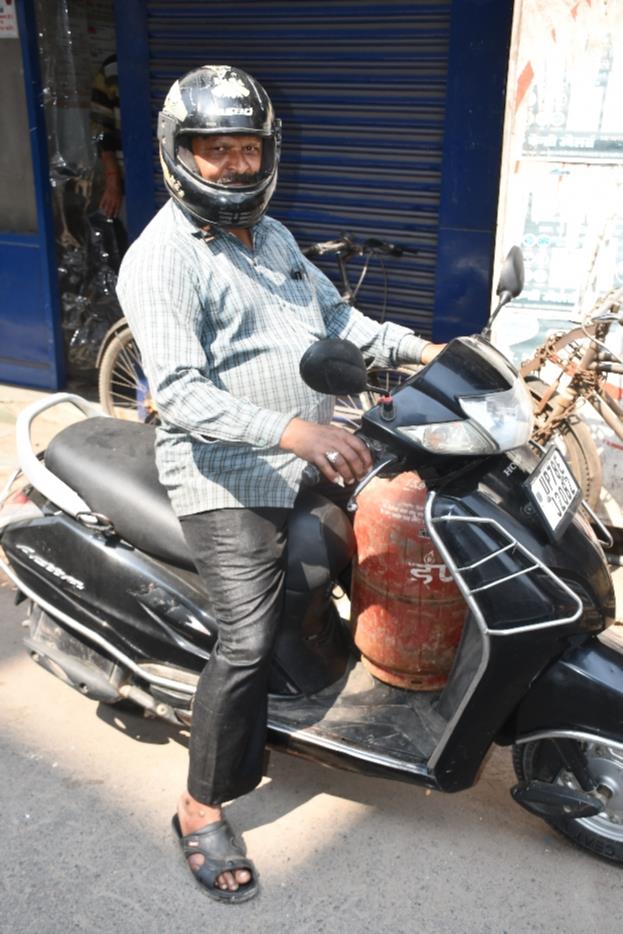 लाजपत नगर स्थित भागवत गैस एजेंसी में सिलिंडर न मिलने पर खाली सिलिंडर वापस लेकर जाता उपभोक्ता राजेंद्र पाल। जागरण
