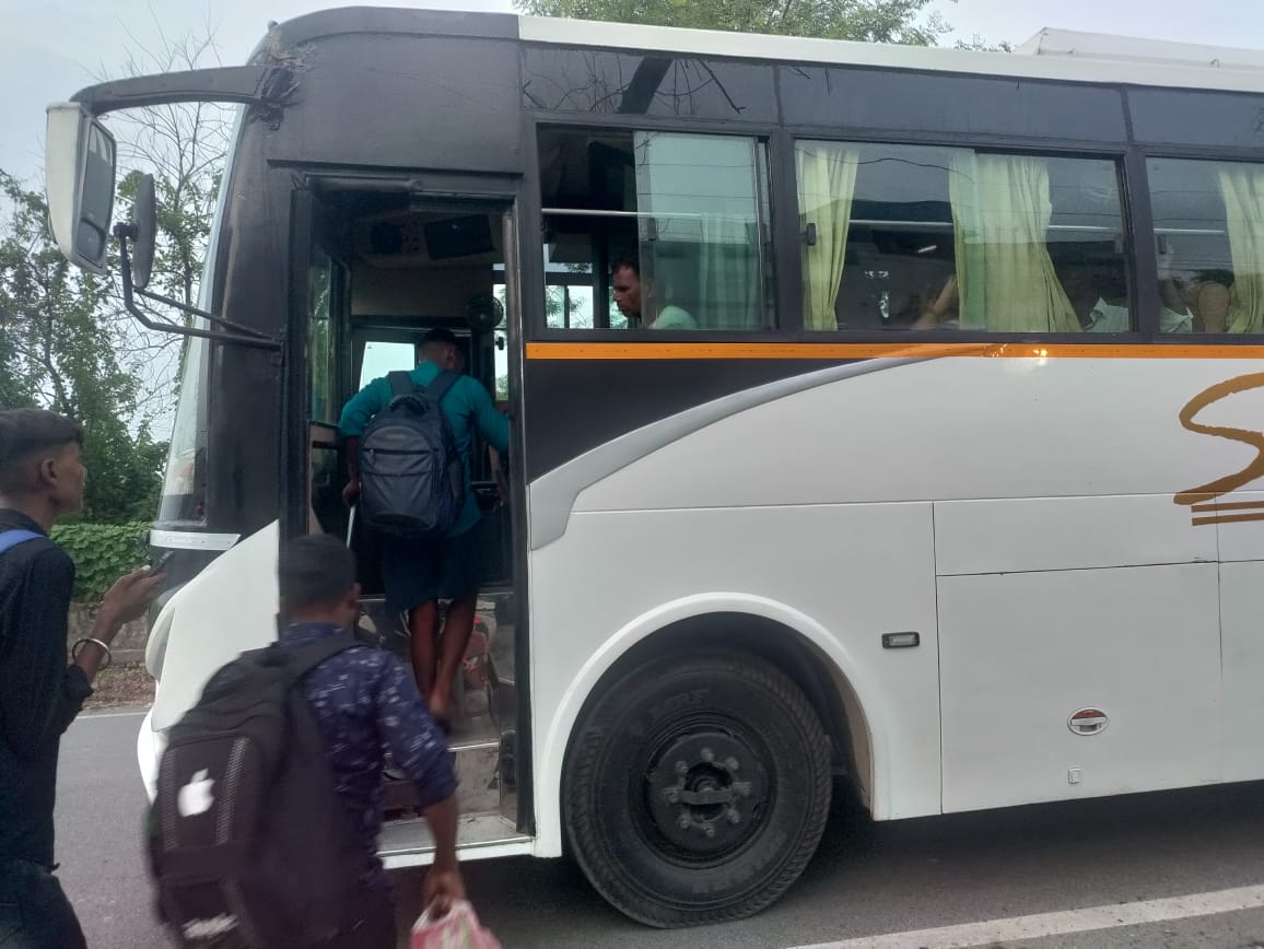 बस से यात्रियों को भेजा जा रहा है कानपुर सेंट्रेल।