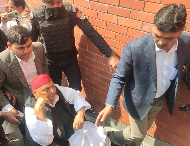इटावा : सैफई स्थित अभिनव विद्यालय में बने मतदान केंद्र पर पहुंचे सपा संरक्षक मुलायम सिंह यादव ने भी वोट डाला। अस्वस्थ्य होने के कारण वह व्हीलचेयर पर बूथ तक आए और मतदान किया। उन्हें पूरी सुरक्षा के साथ ड्यूटी में लगे पुलिस जवान बूथ तक ले गए।