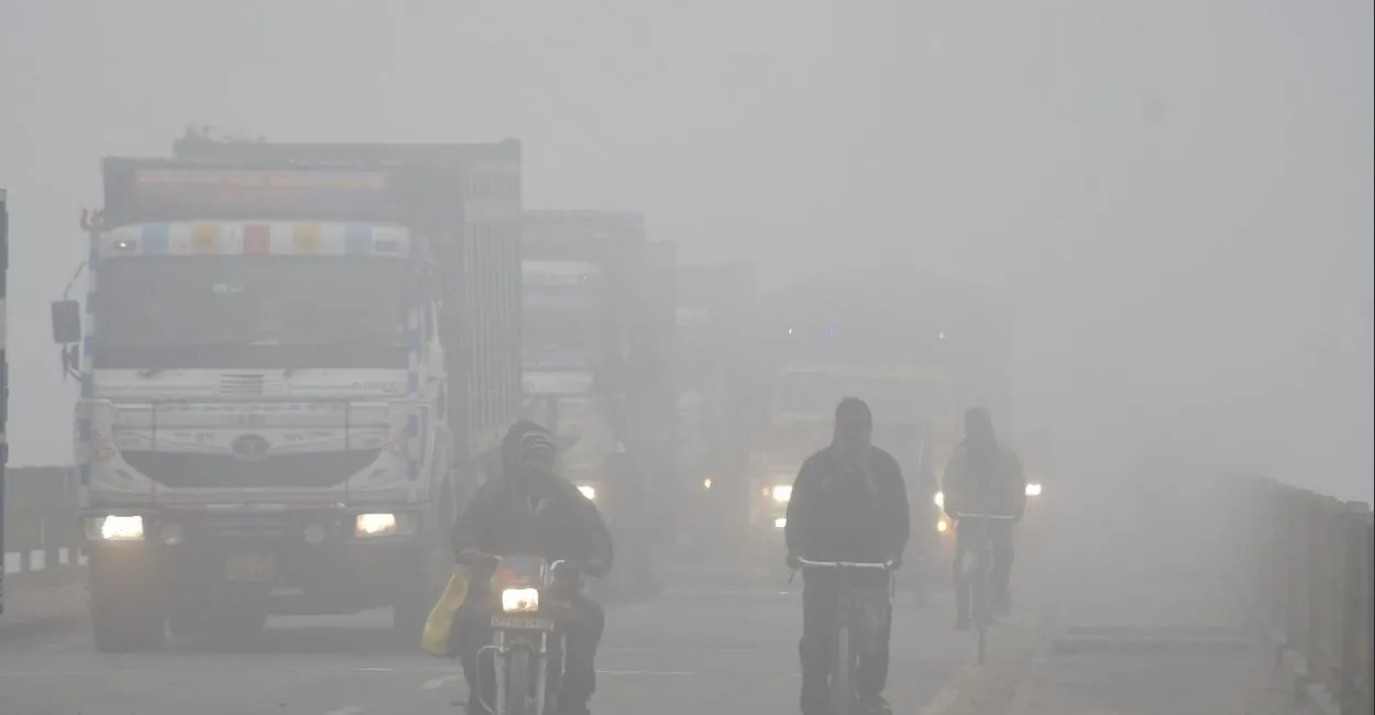 कन्नौज में कोहरे से दिन में रात जैसा नजारा