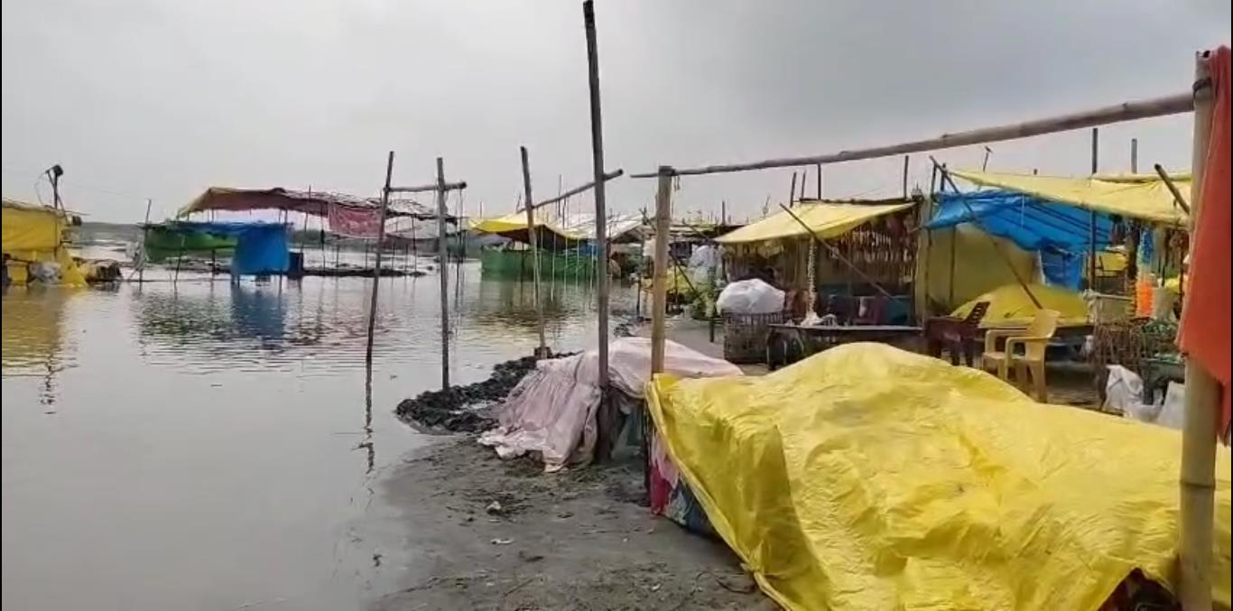 रात ही रात गंगा का पानी घाट की ओर बढ़ आया। किनारे पर रखी अस्थायी दुकानें भी डुबने लगी। जिन्हें सुबह होते ही हटवाया गया है। घाट से कुछ दूरी पर दुकान लगाई है। अब सुरक्षित हैं।