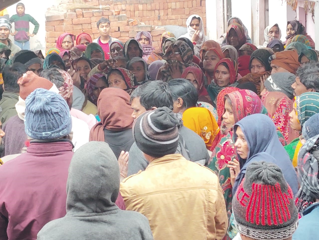 गांव पहुंचा शव तो लोगों की लगी भीड़।