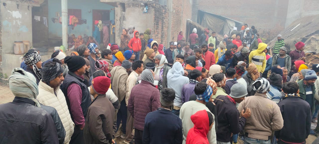 घटना के बाद मौके पर बड़ी संख्या में ग्रामीण जुट गए।