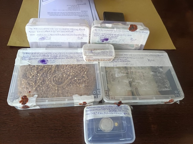 पकड़े गए लोगों की पहचान कानपुर देहात निवासी बीरबल उर्फ मोहन शर्मा व भोपाल निवासी राजू सिंह, लक्ष्मी बंजारा के रूप में हुई। सभी के पास से दो किलो 482 ग्राम पीली धातु की लरी, पीली धातु की एक टिकिया, 1905 ग्राम का बना सफेद धातु का सिक्का, 24,053 रुपये नकद व तीन फर्जी आधार कार्ड बरामद हुए हैं।