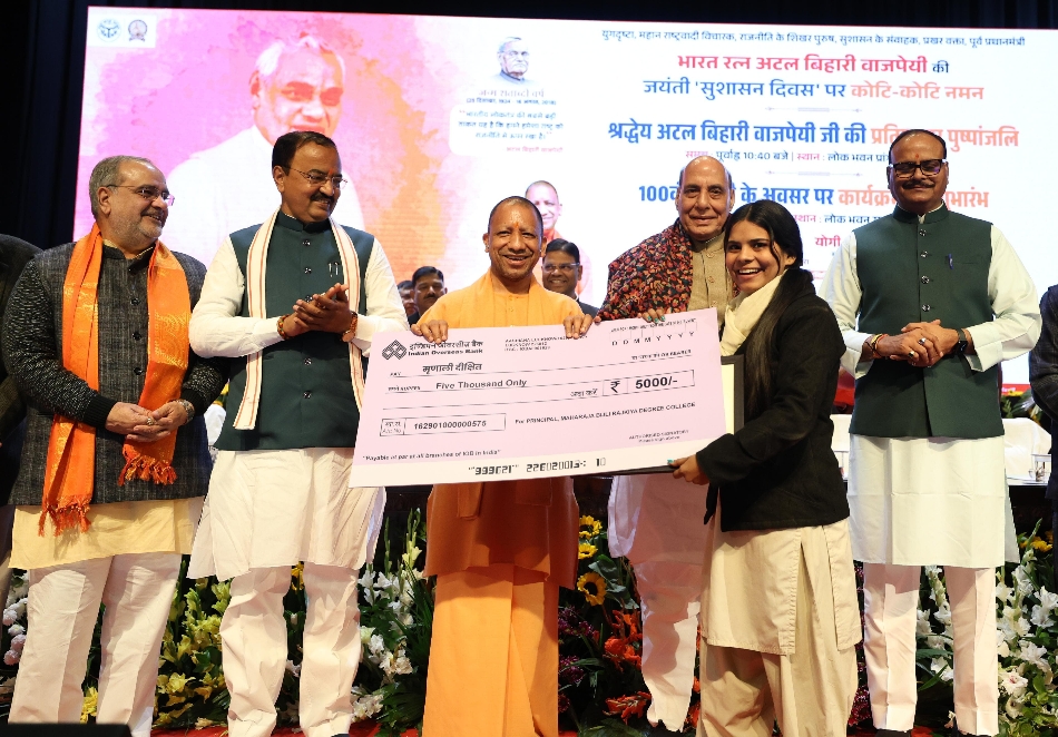 योगी ने कहा कि अटल जी ने भावी भारत के निर्माण व विकास की जो नींव रखी थी, पीएम मोदी के नेतृत्व में उस नए भारत का निर्माण हो रहा है। कार्यक्रम में राजधानी में आयोजित विभिन्न प्रतियोगिताओं के विजेताओं, सचिवालय में अच्छा कार्य करने वाले अनुभाग विभागों को सम्मानित किया गया। काव्य पाठ प्रतियोगिता में पहला स्थान महाराजा बिजली पासी डिग्री कॉलेज की छात्रा स्नेहा तिवारी, दूसरा स्थान नवयुग कन्या डिग्री कॉलेज की छात्रा शांभवी शुक्ला व तीसरा पुरस्कार खुनखुनजी गर्ल्स कॉलेज की छात्रा विदुषी मिश्रा ने हासिल किया।