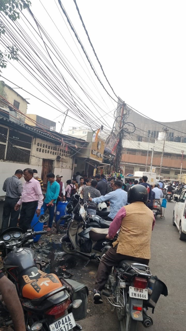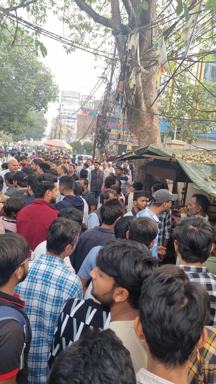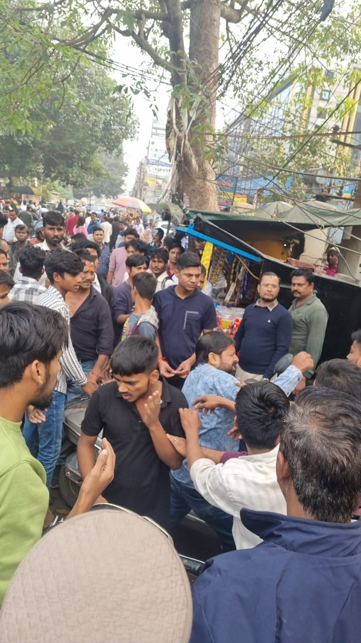 नवल किशोर रोड पर हुई मारपीट के बाद लगा मजमा। जागरण