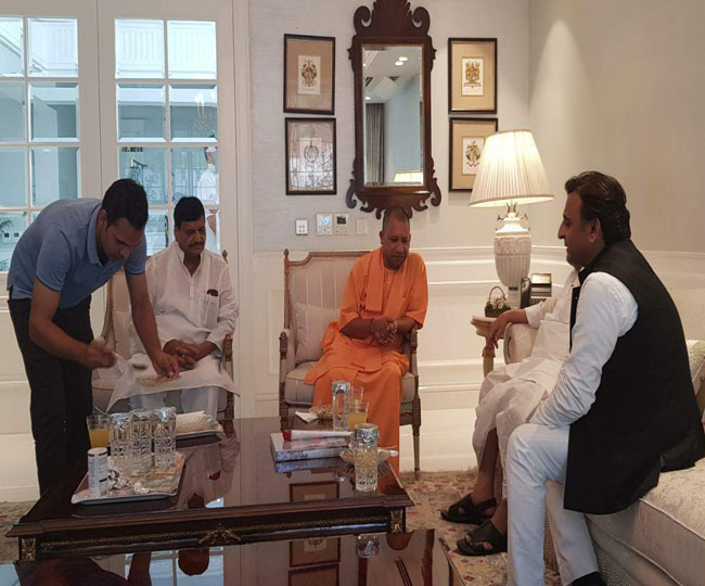 सीएम योगी आदित्यनाथ के साथ शिवपाल सिंह यादव, अखिलेश यादव तथा मुलायम सिंह यादव ने वार्ता भी की और जलपान किया। मुख्यमंत्री योगी आदित्यनाथ ने इस अवसर पर मुलायम सिंह यादव को गुलाब का फूल तथा एक पुस्तक भी भेंट की।
