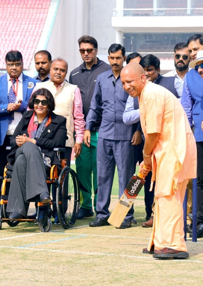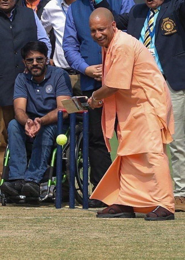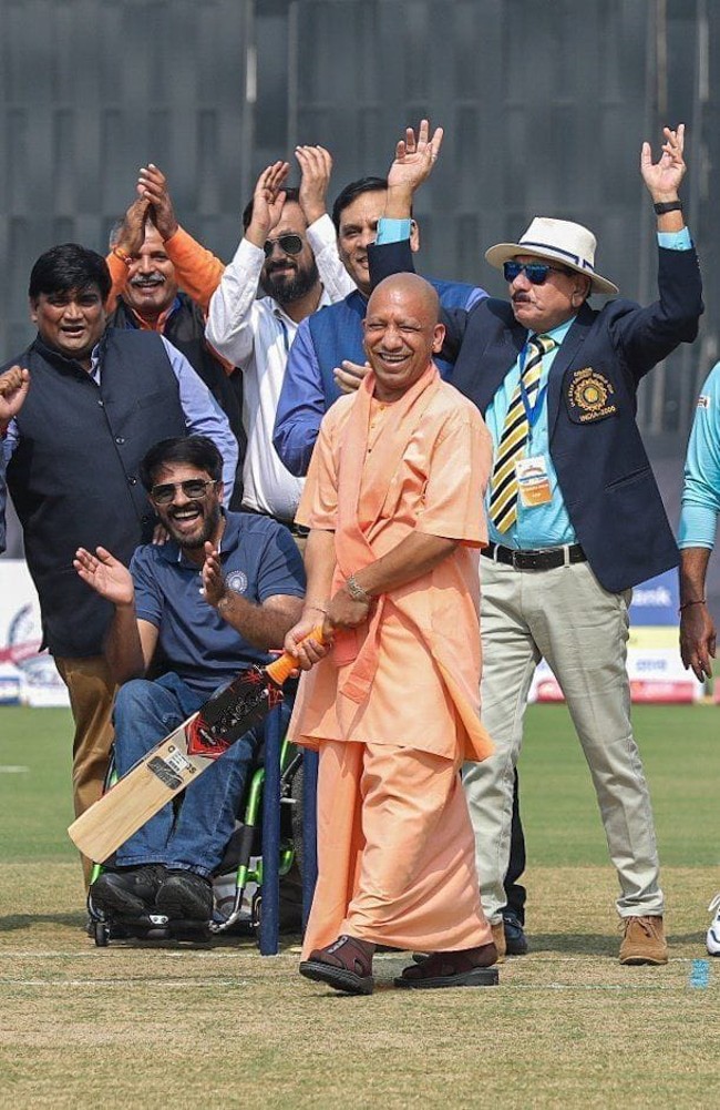 UP News: ...और जब सीएम योगी आदित्यनाथ ने मैदान में उतर कर लगाए बल्ले से शॉट, देखें तस्वीरें...