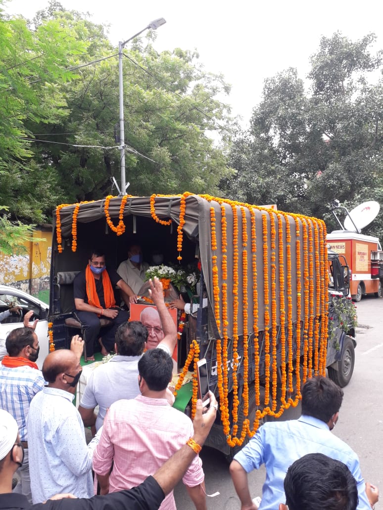 दोपहर एक बजे उनका पार्थिव शरीर चौक सोंधी टोला आवास पर ले जाया गया। यहां रक्षा मंत्री राजनाथ सिंह व मध्य प्रदेश के मुख्यमंत्री शिवराज सिंह चौहान के अलावा उत्तर प्रदेश सरकार में मंत्री स्वामी प्रसाद मौर्य व सतीश महाना ने पहुंचकर श्रद्धांजलि दी।