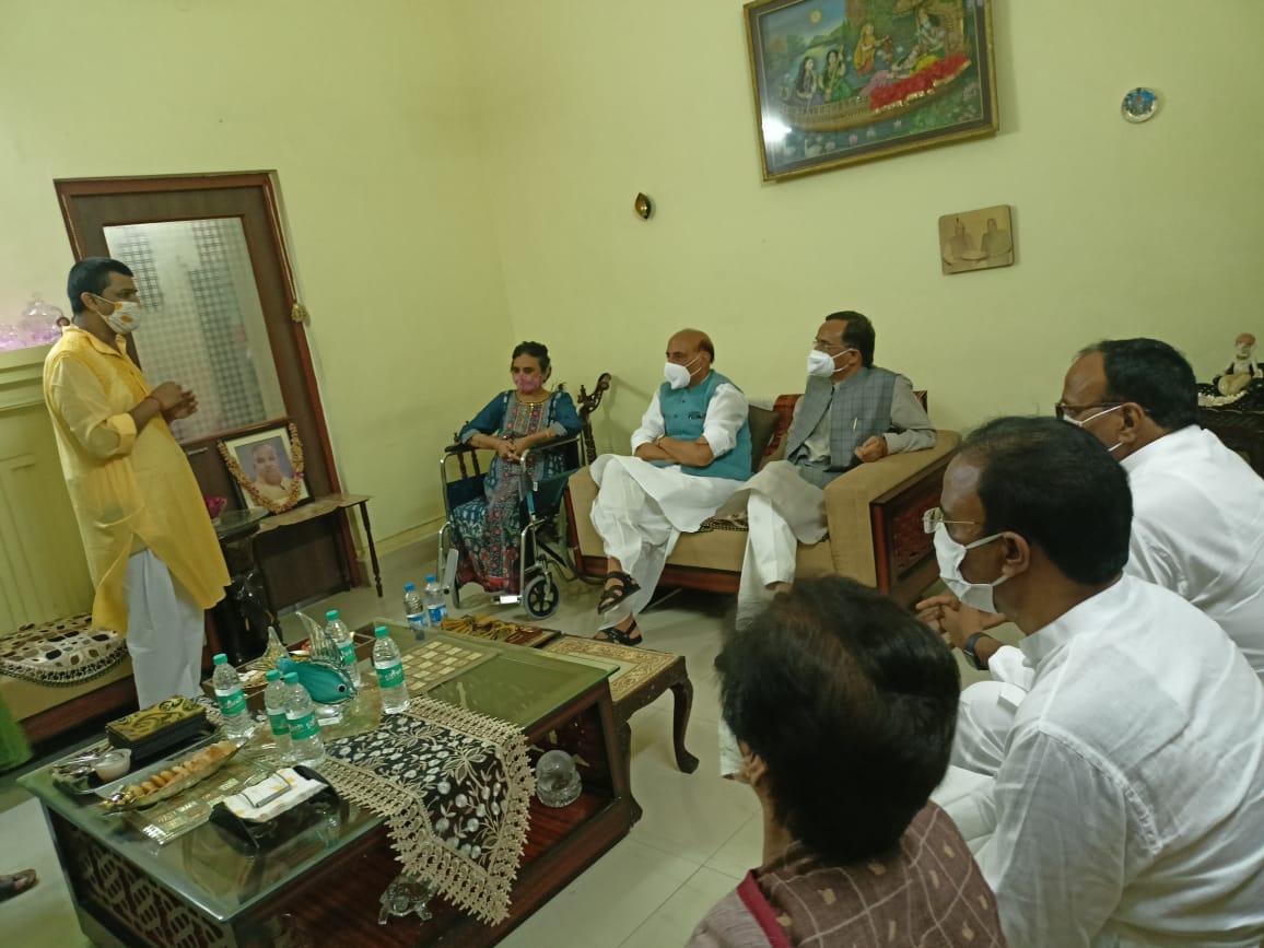 इसके बाद राजनाथ सिंह लखनऊ महानगर भाजपा के पूर्व अध्यक्ष स्व. प्रदीप भार्गव के कैंट रोड आवास पहुंचे। उनकी धर्मपत्नी अचला भार्गव ने रक्षा मंत्री से इच्छा जताई कि छोटे बेटे को भी पार्टी में काम करने का मौका दिया जाए। ताकि परिवार का पार्टी से नाता यूं ही बना रहे। पार्टी ने सदैव ही सम्मान दिया व मदद की जिसके लिए हम सदैव कृतज्ञ रहेंगे। इस दौरान सुपुत्र अभिनव, अपूर्व, पुत्र वधू शिखा, श्वेता पौत्र आरव मौजूद रहे। रक्षामंत्री भाजपा विधायक स्व. सुरेश श्रीवास्तव के टिकैत राय एलडीए कॉलोनी स्थित उनके आवास पहुंचे और परिवारीजनों से भेंट कर शोक संवेदना व्यक्त की।