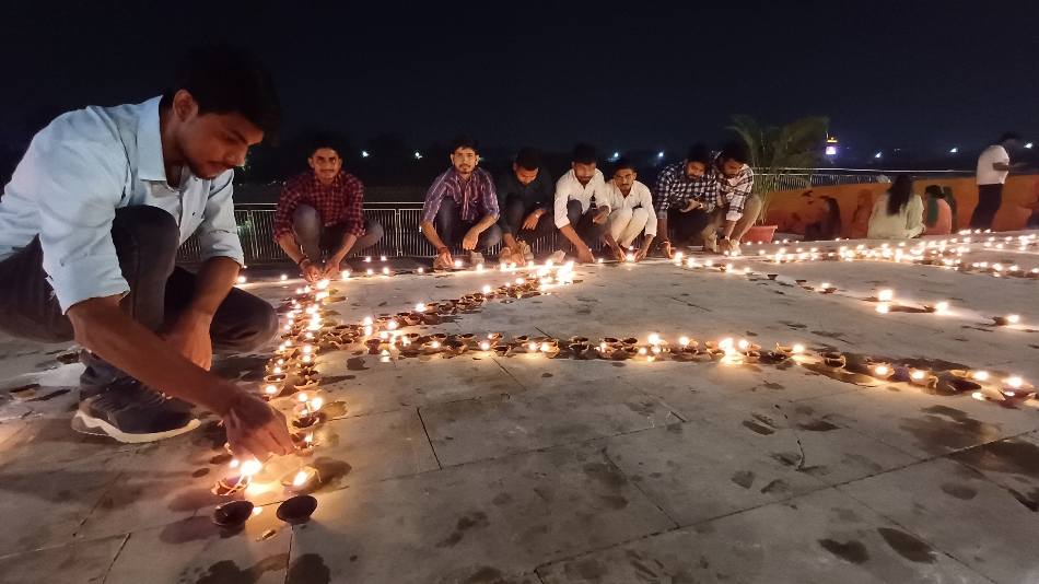 दीप जलाते एकेटीयू के छात्र। जागरण