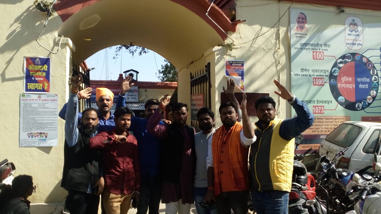 कश्मीरियों पर हमले के मामले में गिरफ्तार आरोपितों की रिहाई के लिए हसनगंज थाने में विश्व हिंदू दल के कार्यकर्ताओं और पदाधिकारियों ने जमकर हंगामा और विरोध प्रदर्शन किया। इसके बाद पुलिस ने समझा बुझाकर हंगामा शांत किया। जिसके बाद दल के कार्यकर्ता वापस लौटे।