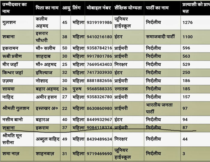 लखनऊ (जेएनएन)। सहारनपुर में पार्षद की निर्दलीय प्रत्याशी शबाना ने दो दिन पहले निकाय चुनाव का परिणाम आने पर आसमान सिर पर उठा लिया था।जीरो वोट मिलने का दावा कर ईवीएम के खिलाफ माहौल बनाने वाली सहारनपुर में निकाय चुनाव की प्रत्याशी शबाना की पोल चुनाव आयोग की वेबसाइट ने खोली ही, खुद उसके पति ने भी जीरो वोट की बात का खंडन किया।