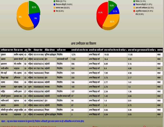जिला निर्वाचन अधिकारी/जिला मजिस्ट्रेट, पीके पांडेय ने कहा कि इस प्रत्याशी को 87 वोट मिले है और यही डाटा राज्य निर्वाचन आयोग की वेबसाइट पर भी अंकित है।