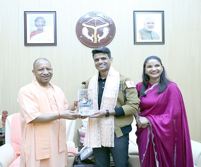 Group Captain Shubhanshu Shukla: पत्नी और पुत्र के साथ सीएम योगी आदित्यनाथ से मिले शुभांशु शुक्ला