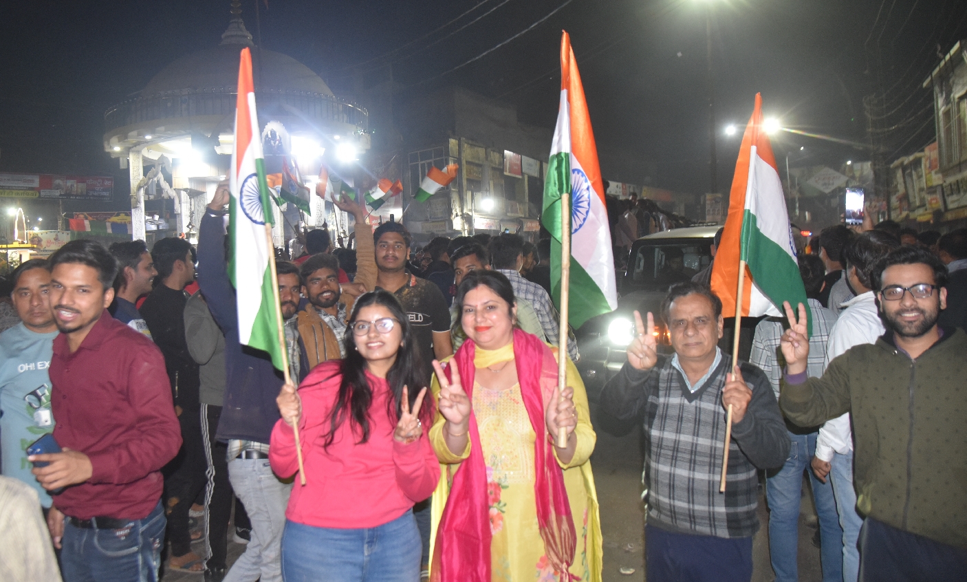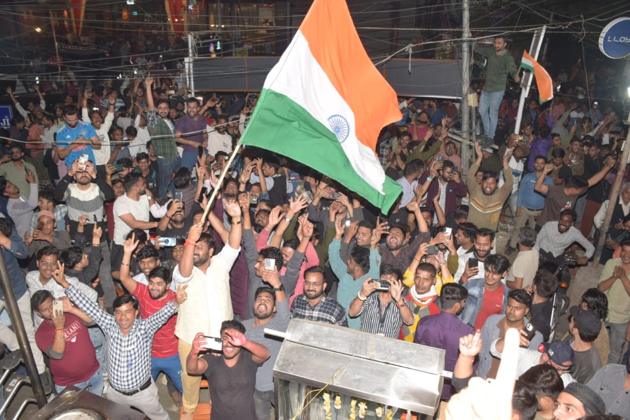 मुजफ्फरनगर के शिवचौक पर भारतीय क्रिकेट प्रेमी तिरंगा लेकर जश्न मनाते हुए। जागरण