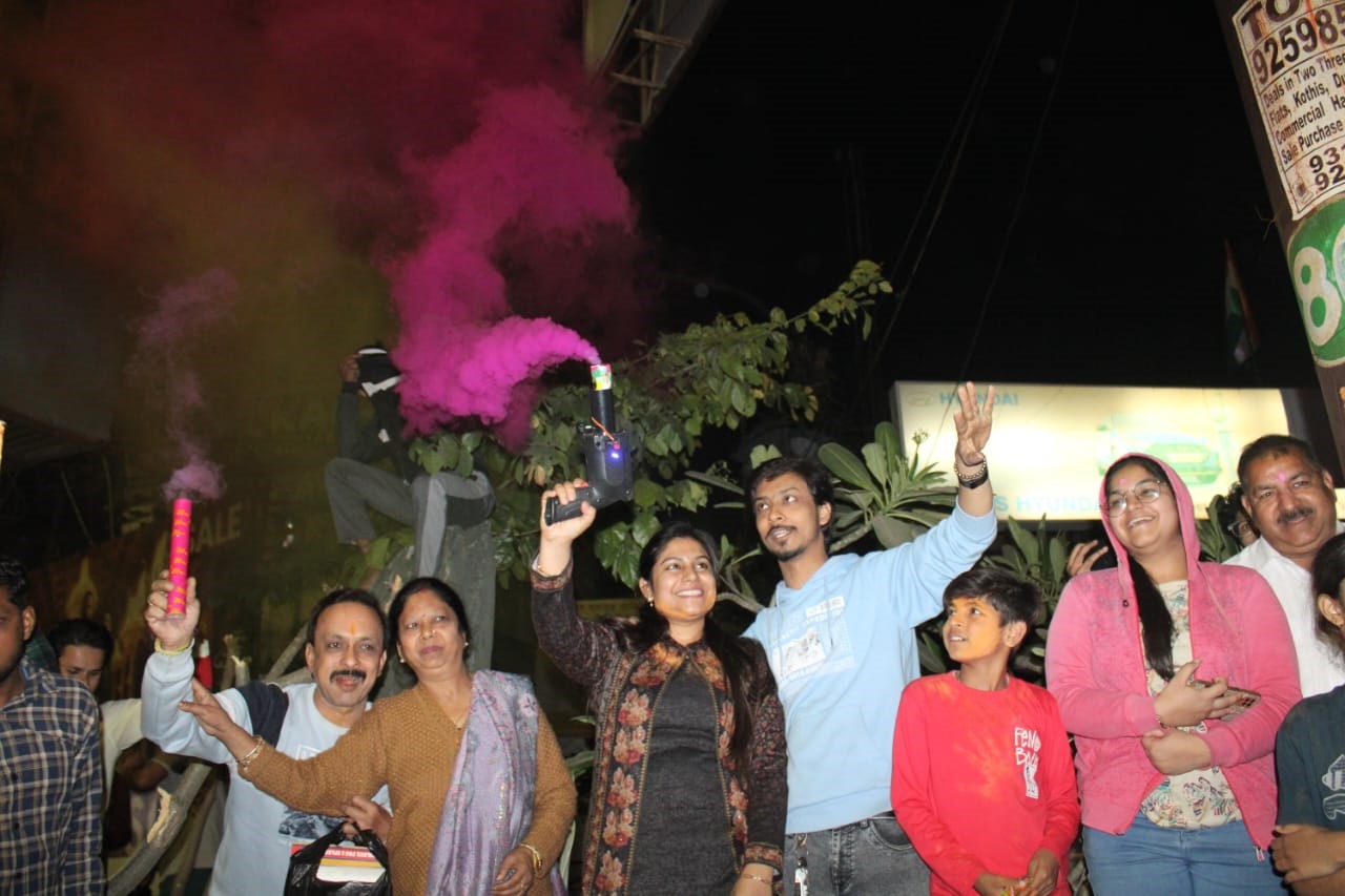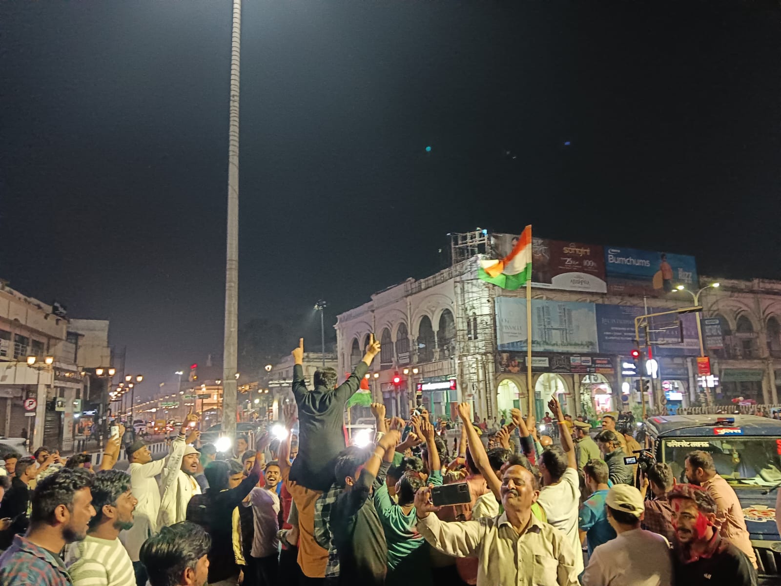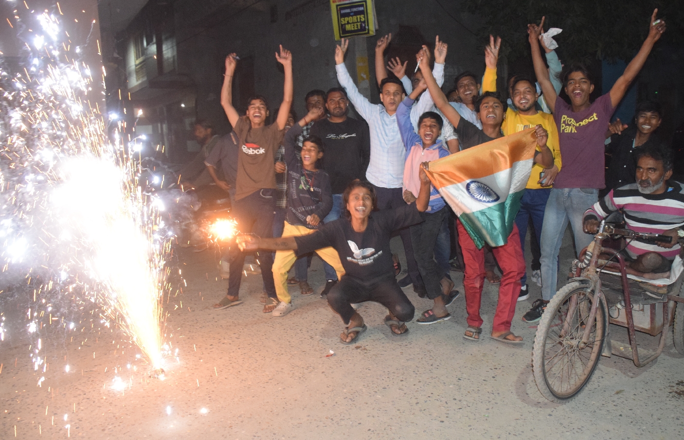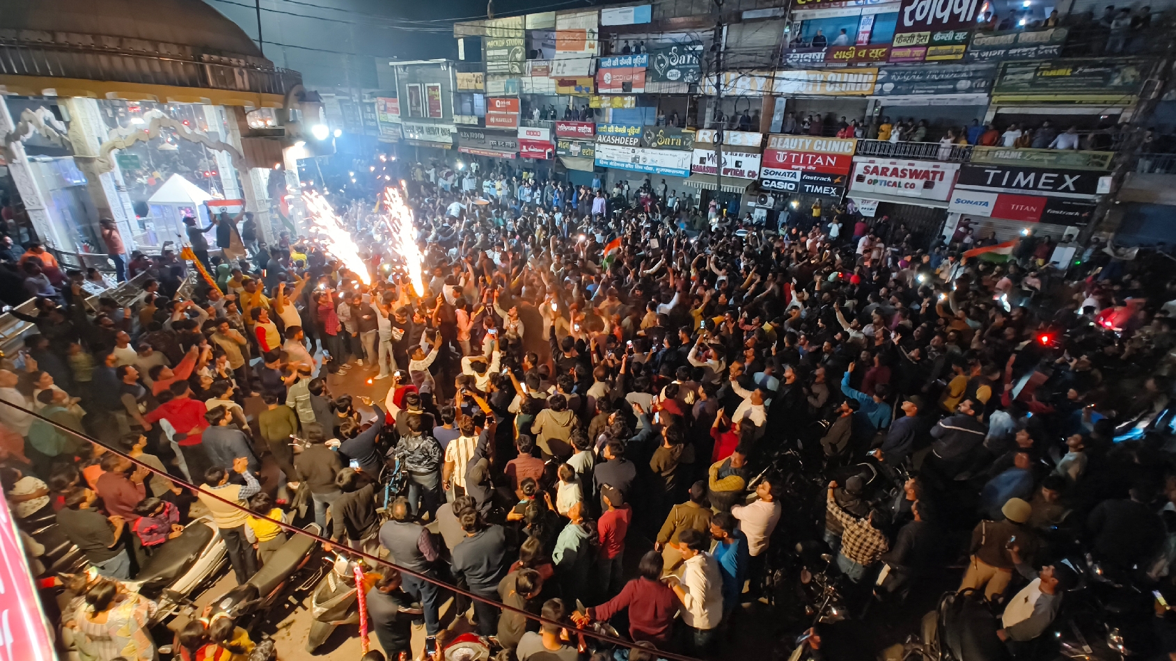 भारत की जीत पर जश्न में डूबे क्रिकेट प्रेमी, शिवचौक पर आतिशबाजी