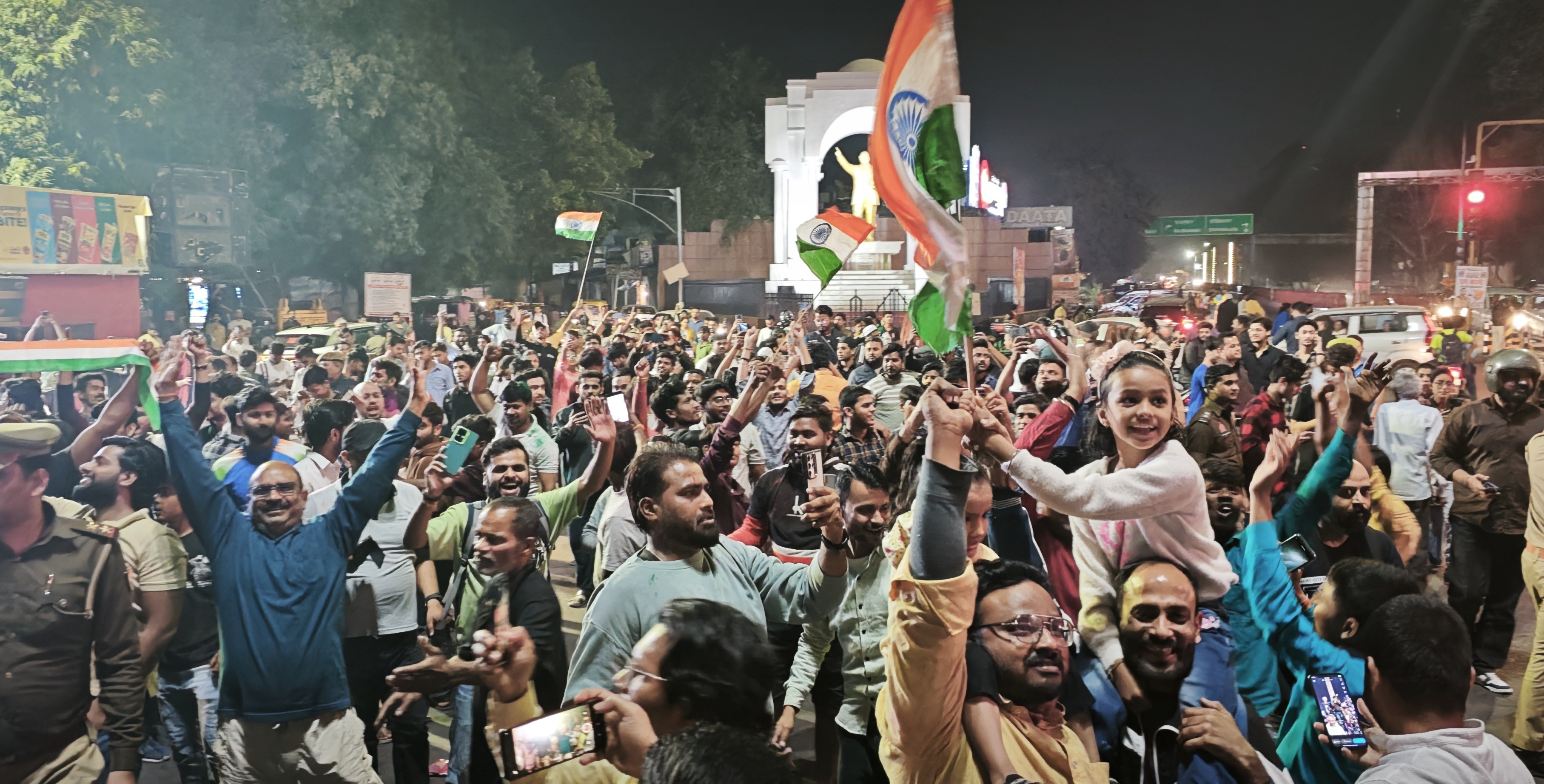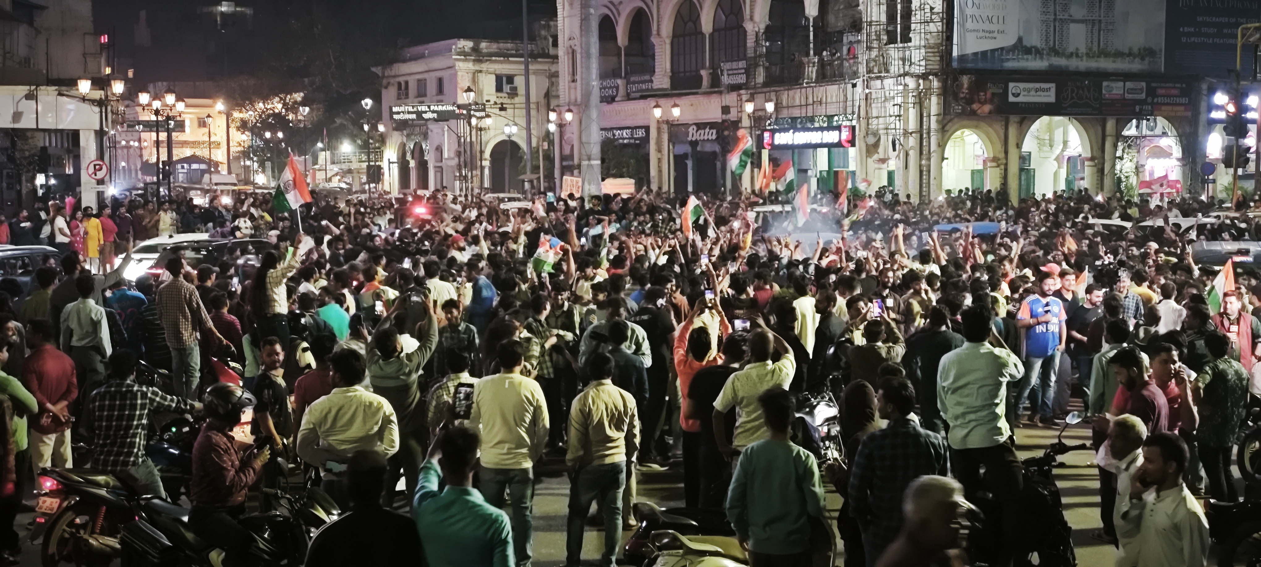 भारत की जीत के बाद हजरतगंज में जश्न मनाते क्रिकेट प्रेमी। पंकज ओझा