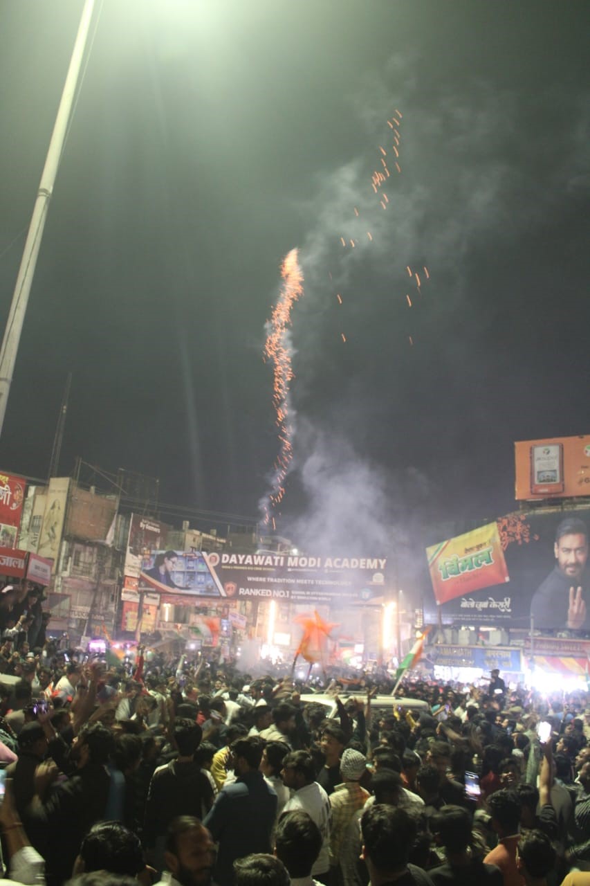 मुजफ्फरनगर के शिवचौक पर भारतीय क्रिकेट टीम की जीत का जश्न मनाने को क्रिकेट प्रमियों का सैबाल उमड़ पड़ा।