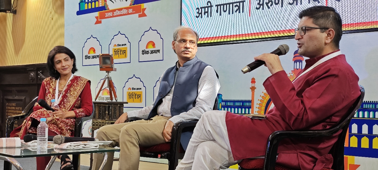 जागरण संवादी के भारत की बात सत्र में लेखिका अमी गणात्रा, लेखक अरुण आनंद और वरिष्ठ स्तंभकार हर्ष वर्धन त्रिपाठी। जागरण