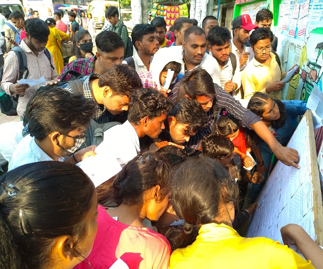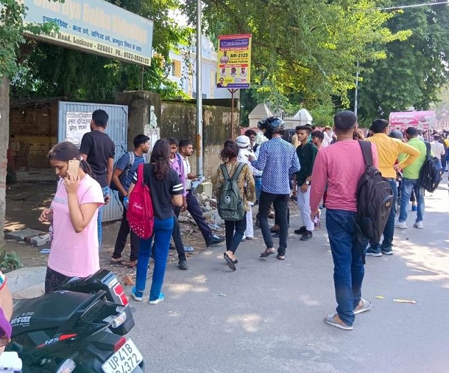 प्रदेश की राजधानी लखनऊ में UPSSSC PET 2022 की परीक्षा देने वाले अभ्यर्थियों की भीड़ उमड़ पड़ी है। सुबह लखनऊ के चारबाग स्टेशन पर परीक्षार्थिंयों का रेला नजर आया। यह तस्वीर लखनऊ के एक परीक्षा केन्द्र की है।