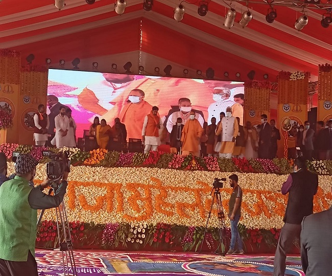 पीएम मोदी के संबोधन को सुनने के साथ स्मारक के कायाकल्प की नींव रखी गई। सीएम योगी आदित्यनाथ के साथ मंच पर प्रदेश सरकार के कैबिनेट मंत्री अनिल राजभर, मुकुट बिहारी वर्मा तथा सांसद अक्षयवर लाल गोंड के साथ विधायक अनुपमा जायसवाल, सुभाष त्रिपाठी, सुरेश्वर सिंह व रामफेरन पाण्डेय भी मौजूद रहे।
