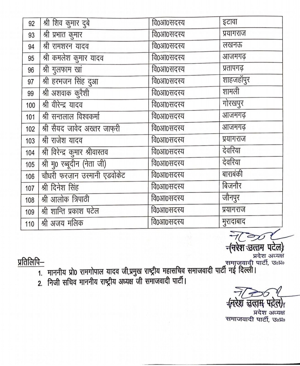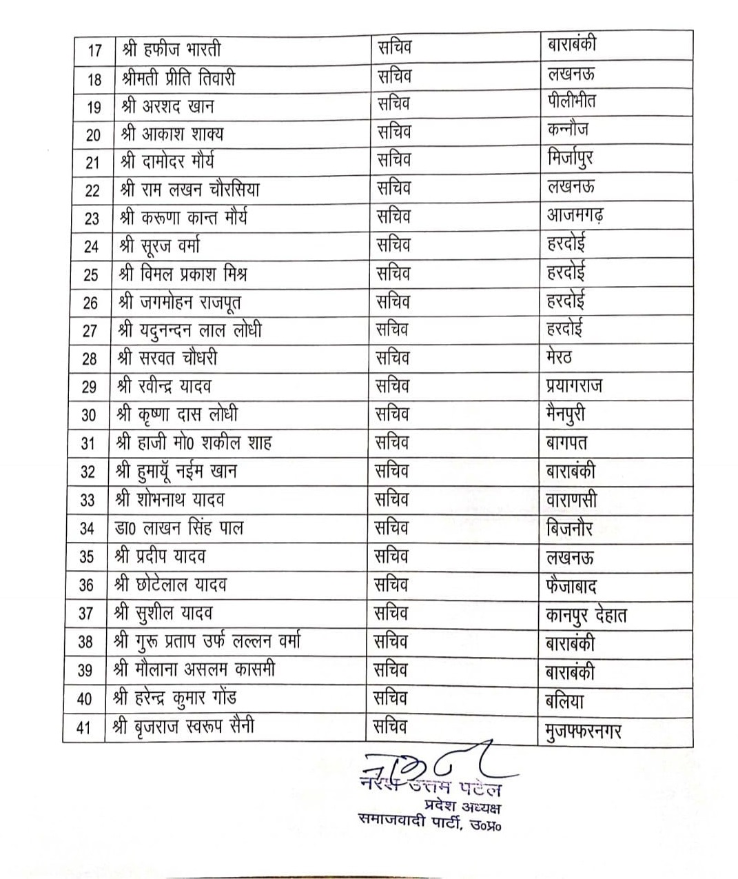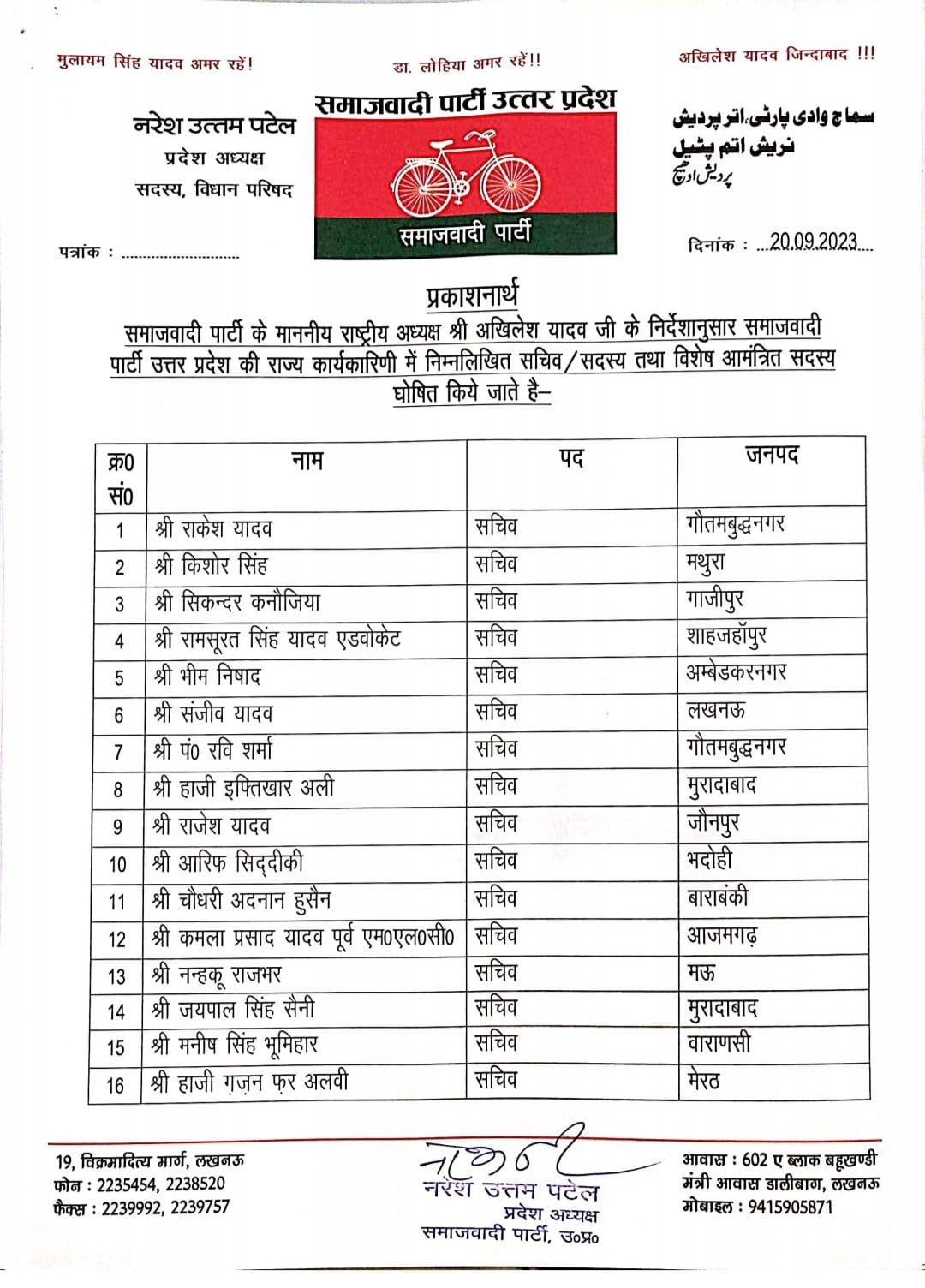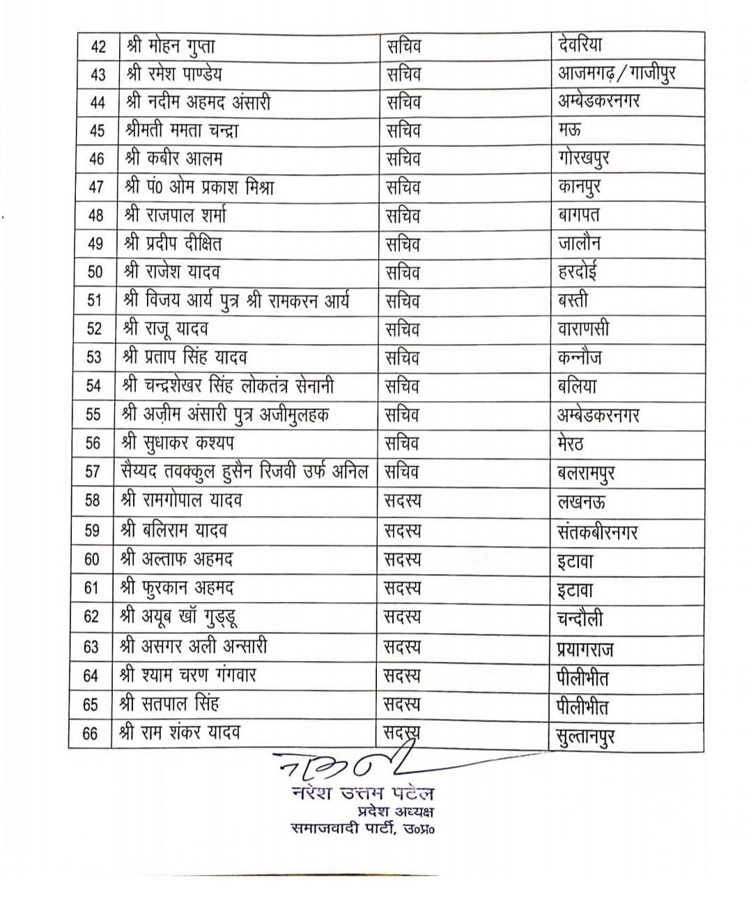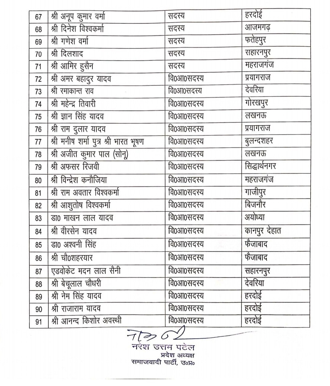 नीचे देखें सपा की राज्य कार्यकारिणी लिस्ट-