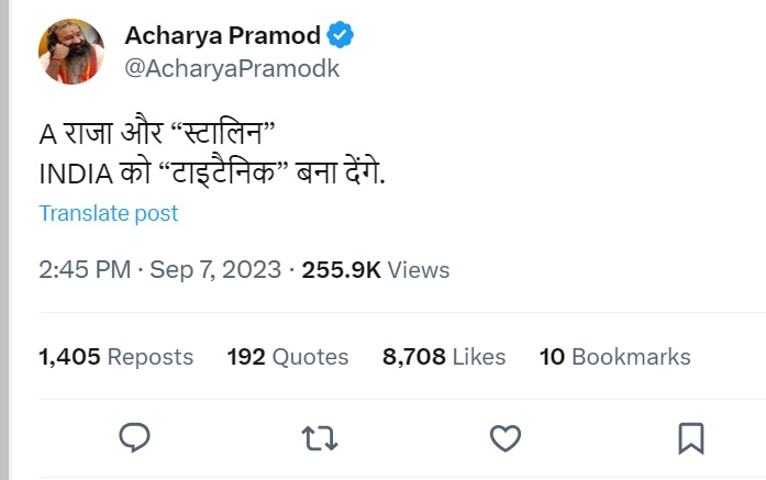 आचार्य प्रमोद के ट्वीट में ए. राजा और स्टालिन का नाम क्यों?