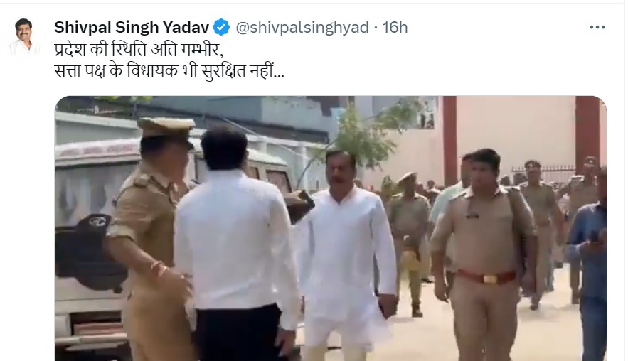राज्य ब्यूरो, लखनऊ। लखीमपुर सदर के विधायक योगेश वर्मा को थप्पड़ मारने की घटना को लेकर समाजवादी पार्टी महासचिव शिवपाल सिंह यादव ने तंज कसा है। उन्होंने इंटरनेट मीडिया पर प्रसारित हो रहे वीडियो को पोस्ट करते हुए एक्स पर लिखा कि प्रदेश की स्थिति अति गंभीर है। सत्ता पक्ष के विधायक भी सुरक्षित नहीं हैं।