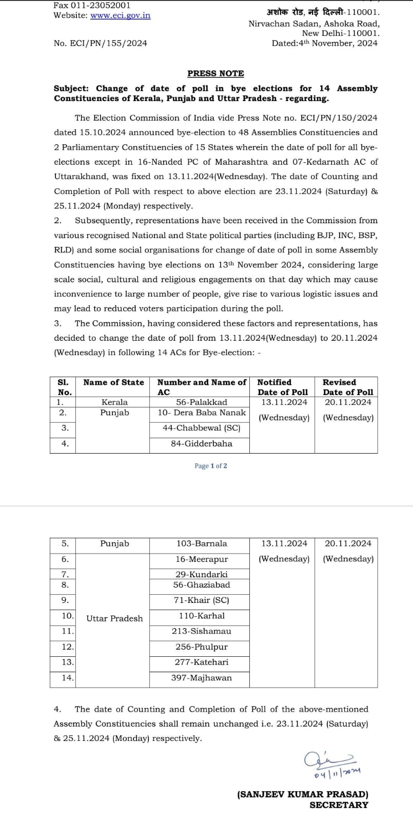 उत्तर प्रदेश के साथ-साथ पंजाब और केरल में मतदान की तारीखों में भी बदलाव किया गया है।