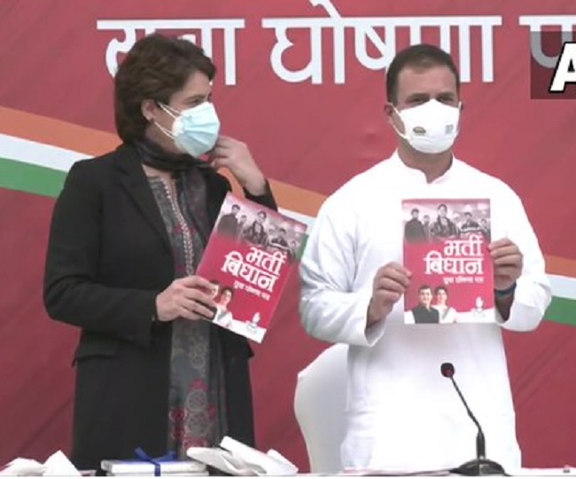 UP Chunav 2022: कांग्रेस का भर्ती विधान युवा घोषणा पत्र, राहुल संग प्रियंका गांधी वाड्रा ने किया जारी