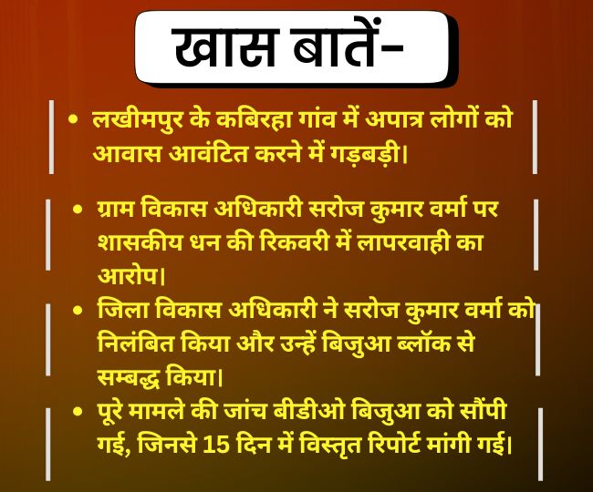 लखीमपुर: अपात्रों को आवास देने में ग्राम विकास अधिकारी निलंबित