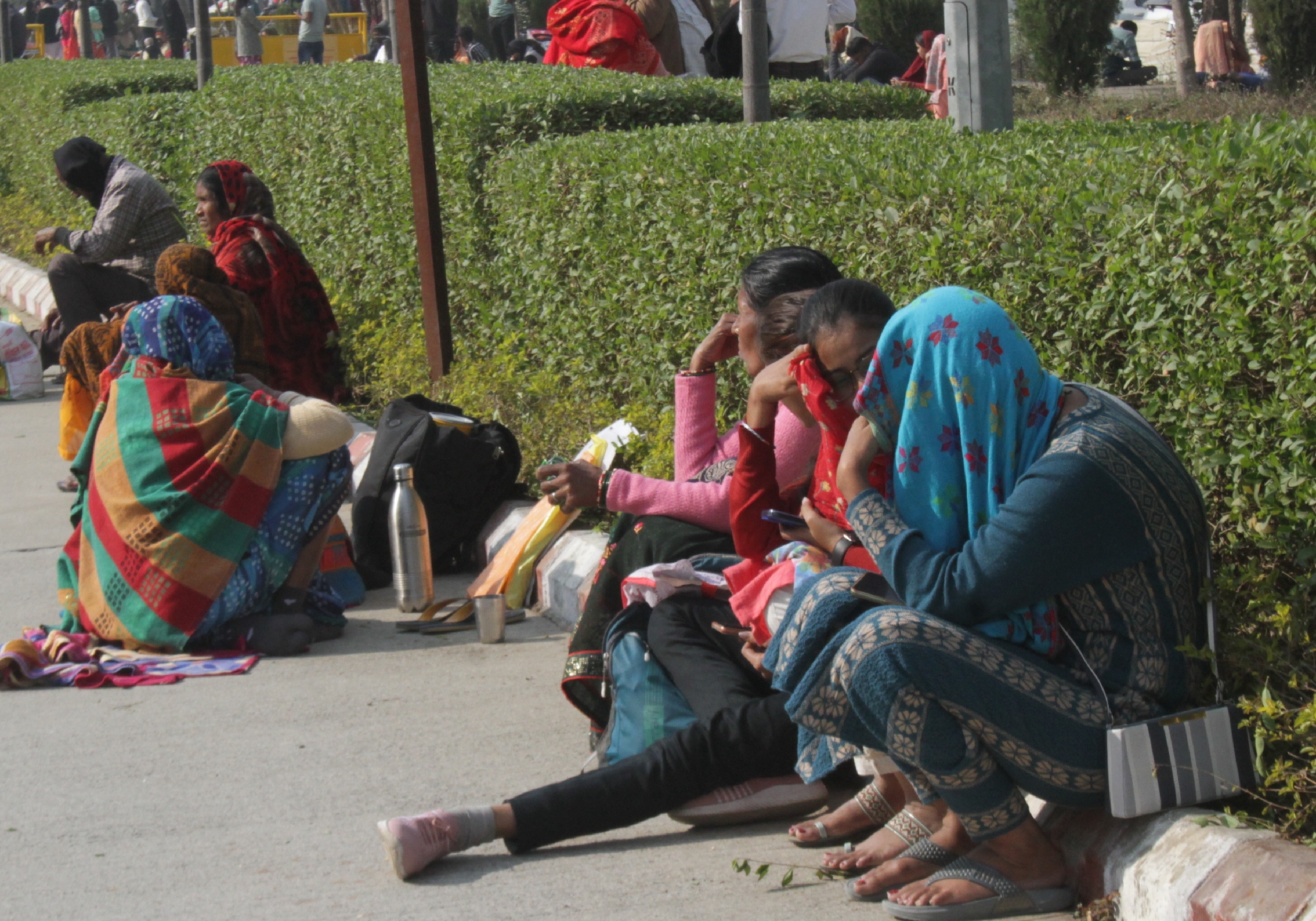 बुधवार को गोरखपुर एम्स के बाहर गुनगुनी धूप का आनंद लेते लोग। जागरण