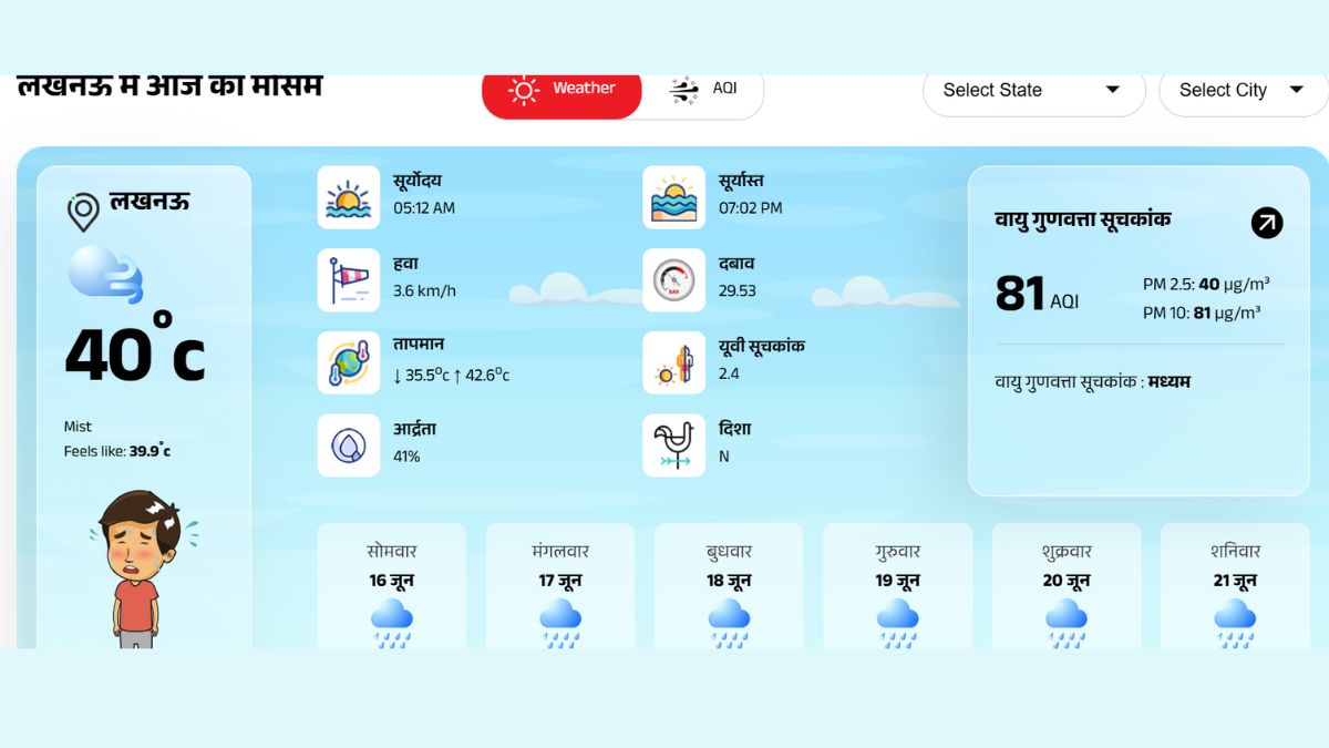 मौसम वैज्ञानिक अतुल कुमार सिंह ने बताया कि बुधवार को प्रदेश में मानसून दस्तक देगा। मौजूदा सप्ताह में अच्छी बारिश के आसार हैं, जिससे दिन के तापमान में सात डिग्री सेल्सियस तक गिरावट दर्ज की जा सकती है।