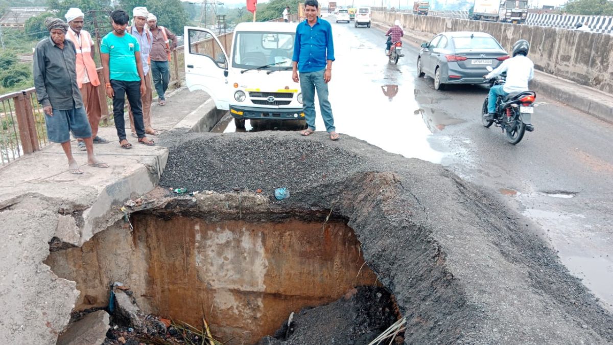 सुनवर्षा ओवरब्रिज का एक हिस्सा धंसा