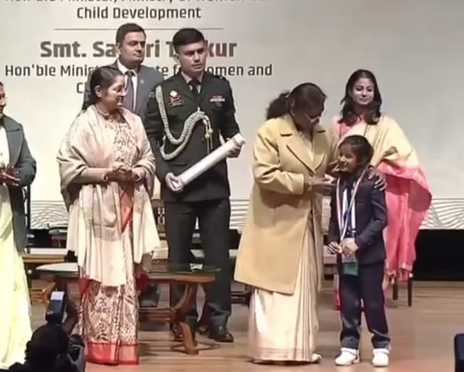Year Ender 2025: सांची उर्फ परी अग्रवाल को राष्ट्रीय बाल पुरस्कार से सम्मानित करतीं राष्ट्रपति द्रौपदी मुर्मू। सौ- स्वजन