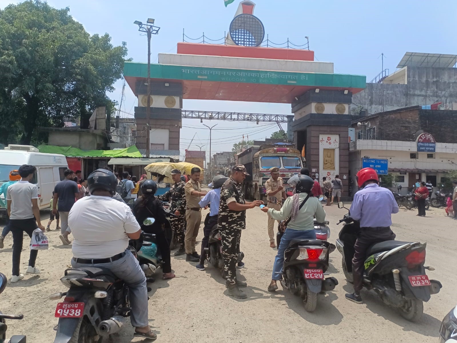 सोनौली सीमा पर जांच करते एसएसबी व पुलिस की संयुक्त टीम। जागरण