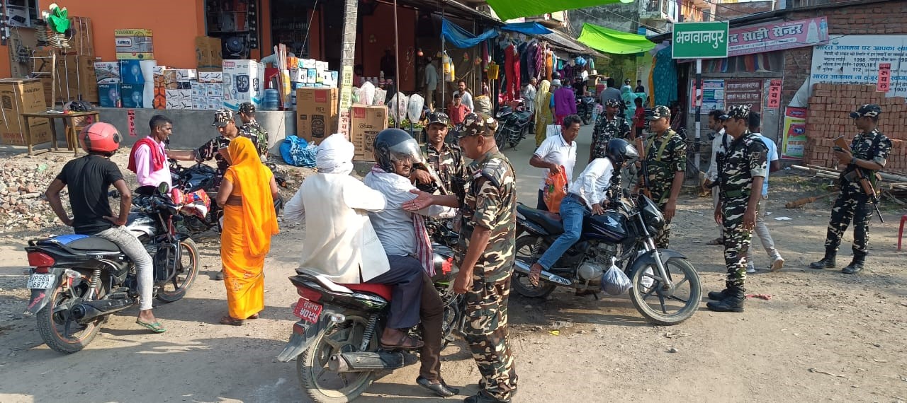 भगवानपुर के पगडंडी मार्ग पर जांच करते एसएसबी जवान। जागरण