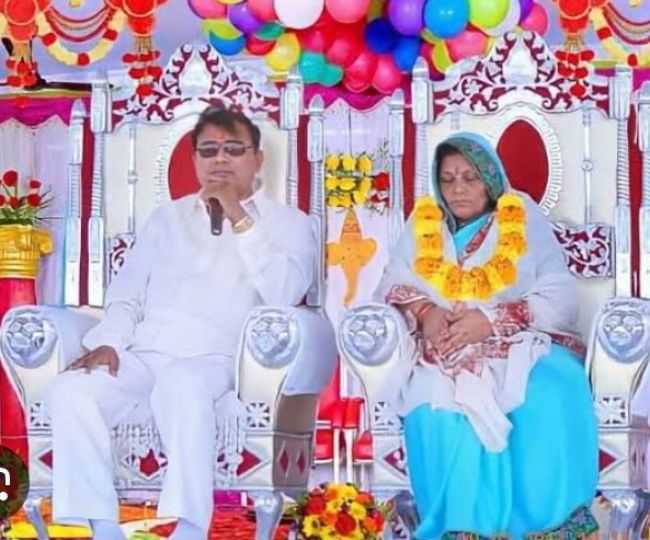 एक सत्संग के दौरान सूरजपाल और उनकी पत्नी का फाइल फोटो।