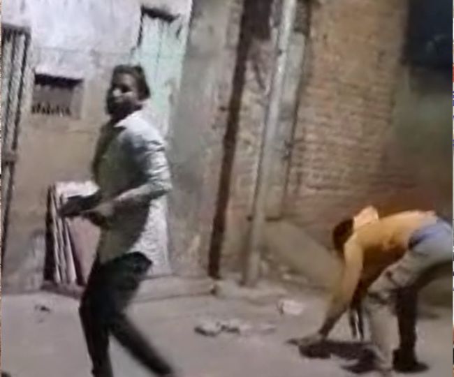 सोमवार रात को झीगुरपुरा में हुए झगड़े में पथराव करते युवक। फोटो सौ. पुलिस विभाग